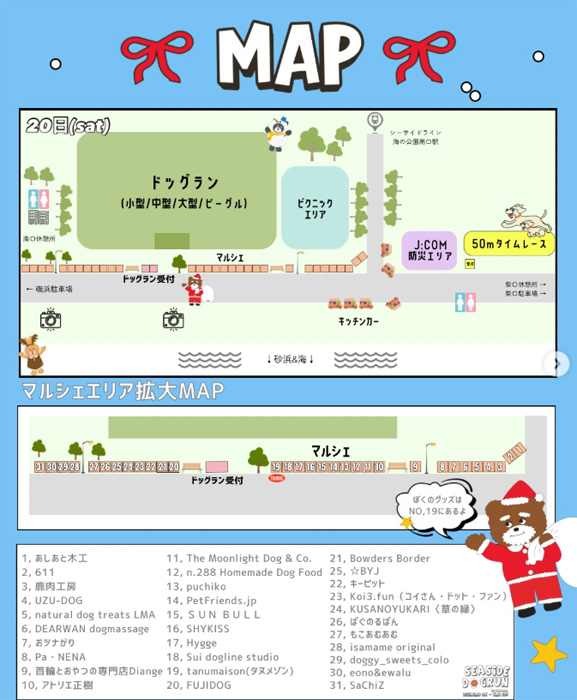 海の目の前の開放的なドッグランをメインに、今回はクリスマステーマで @tanu_maison とコラボしたイラストフォトスポットが登場!