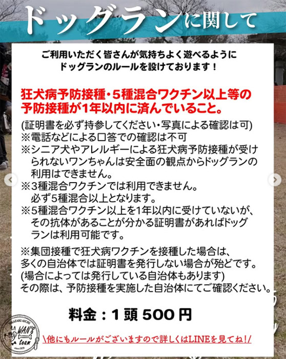 いつも多くのわんこが遊んでくれる人気のドッグランに関してのご案内です!