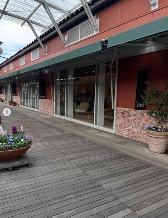 デッキエリアではワンちゃんのオヤツ服、グッズ販売などがありリニューアルモール側では