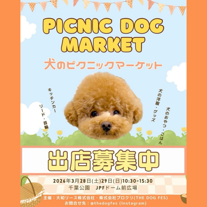 千葉県千葉市 千葉公園 千葉JPFドーム前広場にて、「THE DOG FES-犬のピクニックマーケット- 2026」が2026年3月28日(土)・29日(日)に開催。