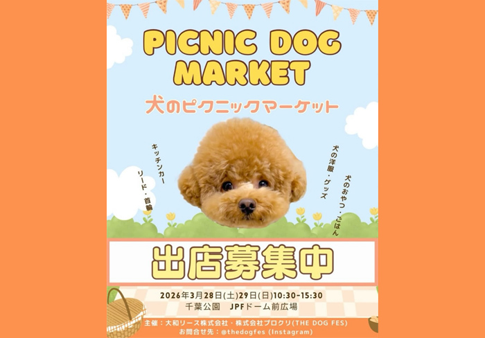 千葉県千葉市 千葉公園 千葉JPFドーム前広場にて、「THE DOG FES-犬のピクニックマーケット- 2026」が2026年3月28日(土)・29日(日)に開催。