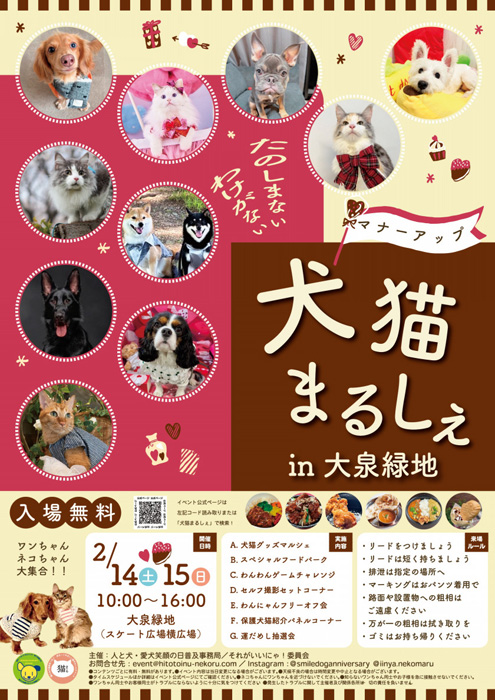大阪府堺市 大泉緑地 スケート広場横会場にて、「犬猫マナーアップまるしぇ in 大泉緑地」が2026年2月14日(土)・15日(日)に開催。