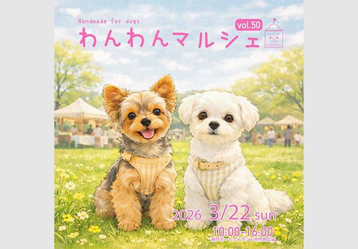 神戸市神戸ポートアイランド内・市民広場にて、「わんわんマルシェ vol.50」が2026年3月22日(日)に開催。