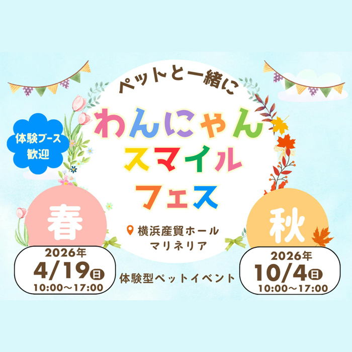 神奈川県横浜市 横浜産貿ホール マリネリアにて「わんにゃんスマイルフェス2026・春」が2026年4月19日(日)に開催!