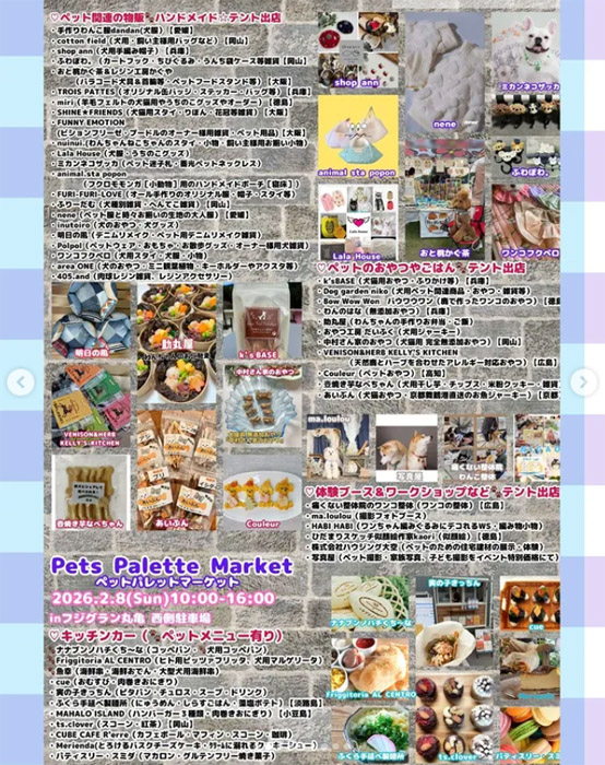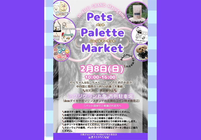 香川県丸亀市にあるフジグラン丸亀 ダイキ側駐車場にて「第6回 Pets Palette Market ペッツ パレット マーケット」が2025年11月8日(土)・9日(日)に開催。