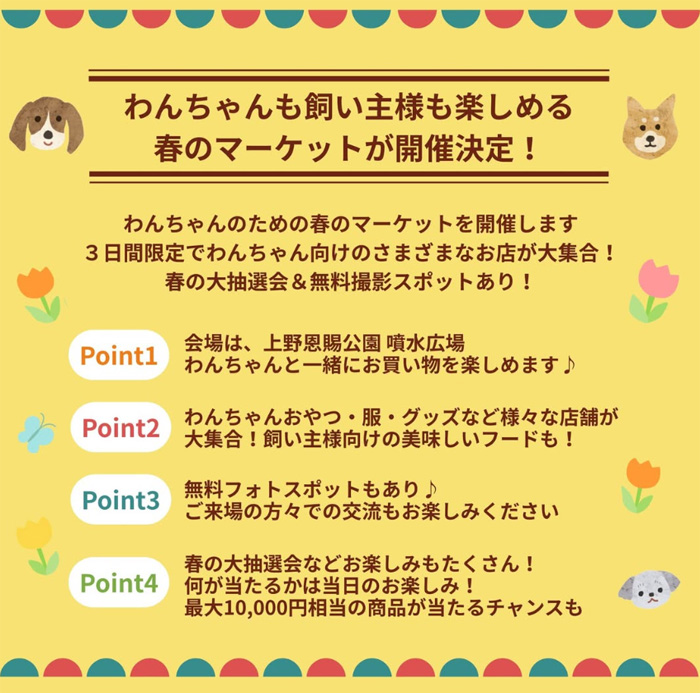 ・わんちゃんと一緒にお買い物・・・上野恩賜公園 噴水広場で開催!わんちゃんを連れてお買い物を楽しめます
