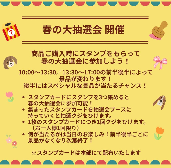 ・春の大抽選会開催・・・スタンプカードにスタンプを3つ集めると大抽選会に参加可能