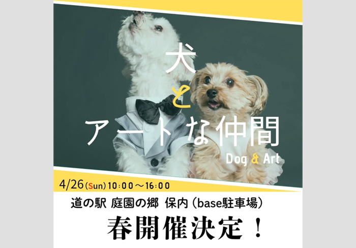 新潟県三条市にある道の駅 庭園の郷 保内 base駐車場にて「犬とアートな仲間 in 道の駅 庭園の郷保内」が2026年4月26日(日)に開催!