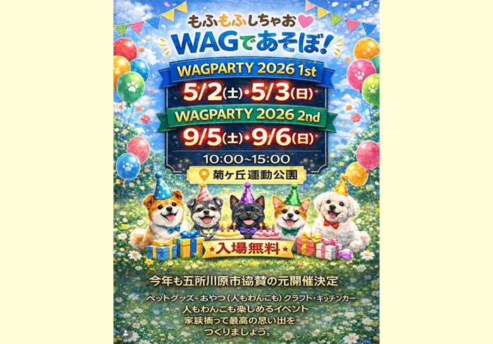 青森県五所川原市 菊ヶ丘運動公園にて、「WAGPARTY 2026 1st」が2026年5月2日(土)・3日(日)に開催。