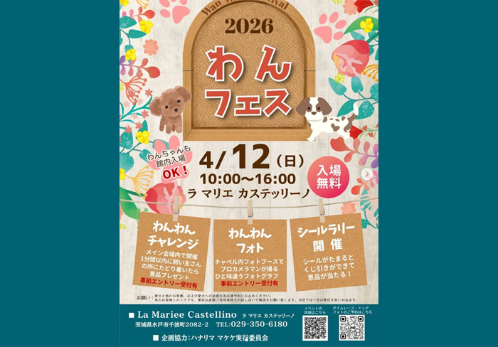 茨城県水戸市にあるラ マリエ カステッリーノにて「わんフェス 2026」が2026年4月12日(日)に開催!