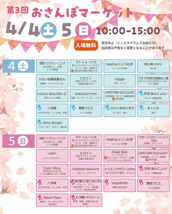 第3回 おさんぽマーケット 【イベント情報】 2026年4月4日(土)・5日(日)開催予定