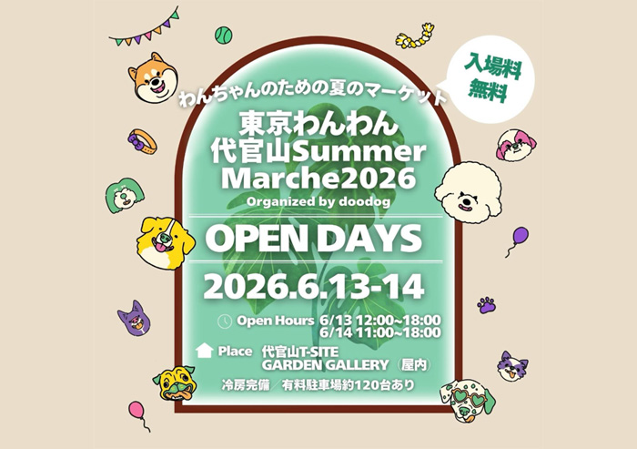 東京都渋谷区 代官山T-SITE GARDEN GALLERYにて「東京わんわん代官山 Summer Marche 2026」が2026年6月13日(土)・14日(日)に開催。