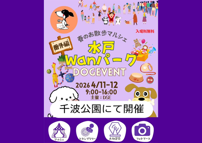 茨城県水戸市にある千波公園 ふれあい広場にて「水戸Wanパーク」が2026年4月11日(土)・12日(日)に開催。
