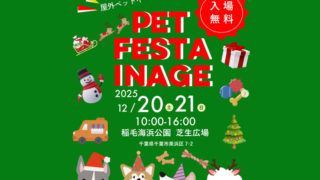 千葉県千葉市にある稲毛海浜公園 芝生広場にて「PET FESTA INAGE ペットフェスタイナゲ in クリスマス」が2025年12月20日(土)・21日(日)に開催。