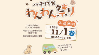 千葉県八千代市 やちよだい東ニマイル広場(旧八千代台東第二小跡地)にて「八千代台わんわん祭り&防災フェスタ」が2025年11月1日(土)に開催予定。 みなさんとわんちゃんが楽しめるペットグッズ&おいしいグルメの出店を予定しています。 たくさんの方とワンちゃんのご来場をお待ちしております!